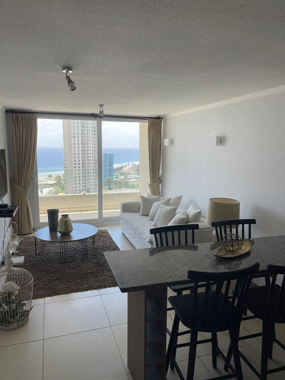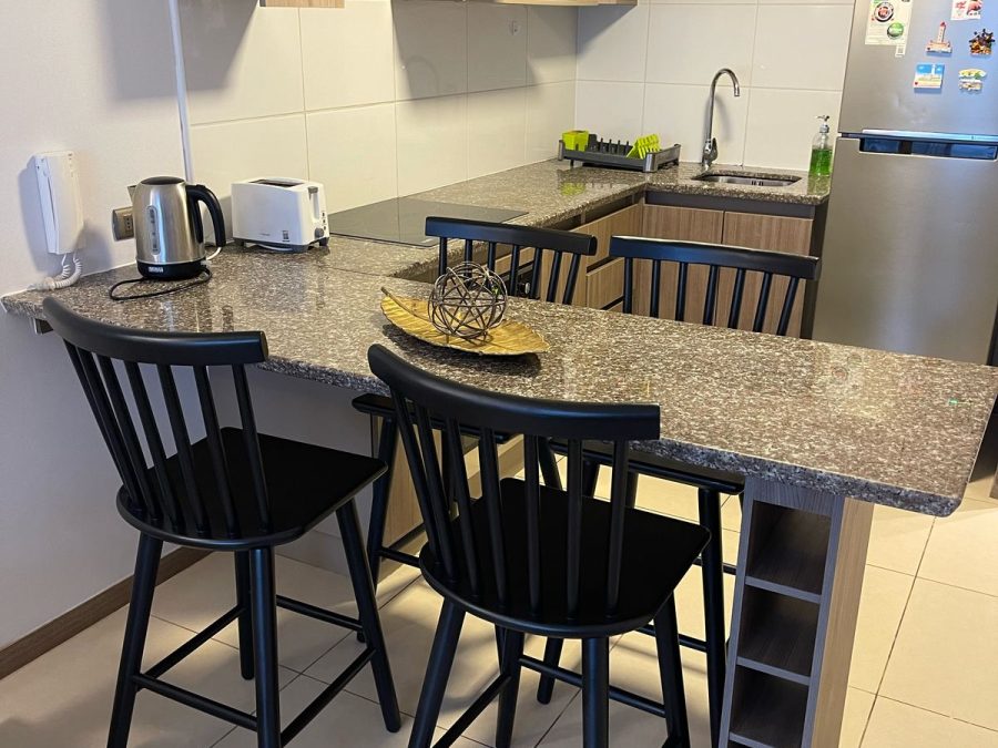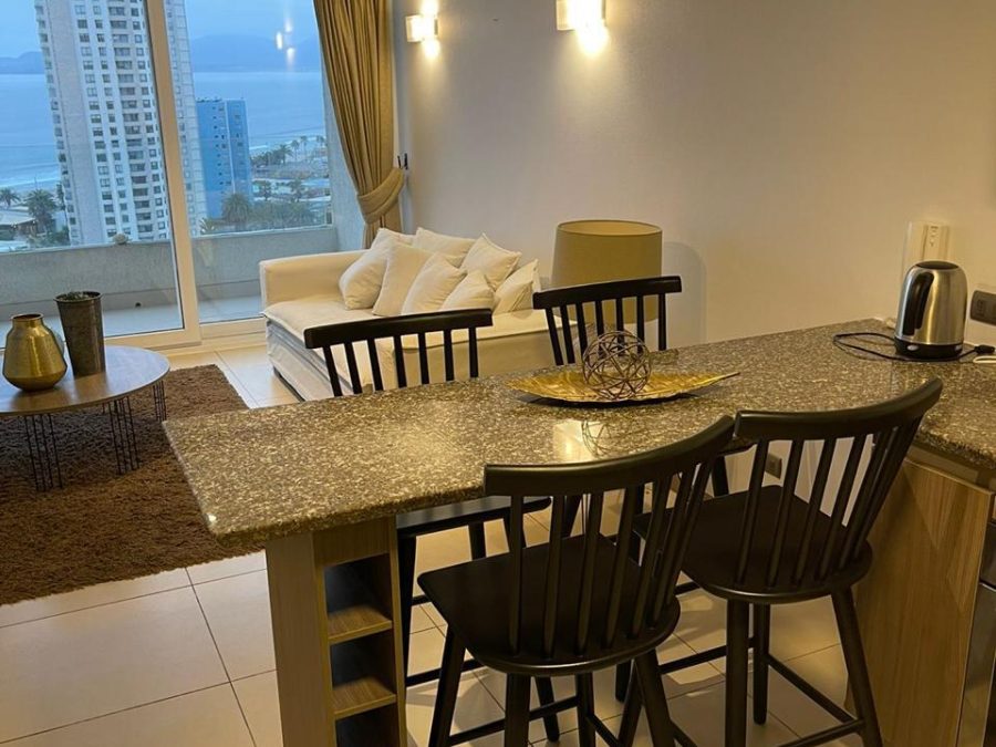 Departamento ubicado en piso 17 con ascensor, cuenta con 60 metros cuadrados construidos y se divide en un dormitorio (el segundo dormitorio es walkin closet, dos baños, living – comedor, cocina americana: amoblada y equipada.